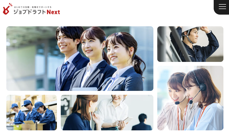 ジョブドラフトNextは、株式会社ジンジブが運営する、10代・20代の若手人材に特化したキャリア支援サービスです。特に高卒者や第二新卒層の「新しい挑戦」を支援することに重みを置いています。